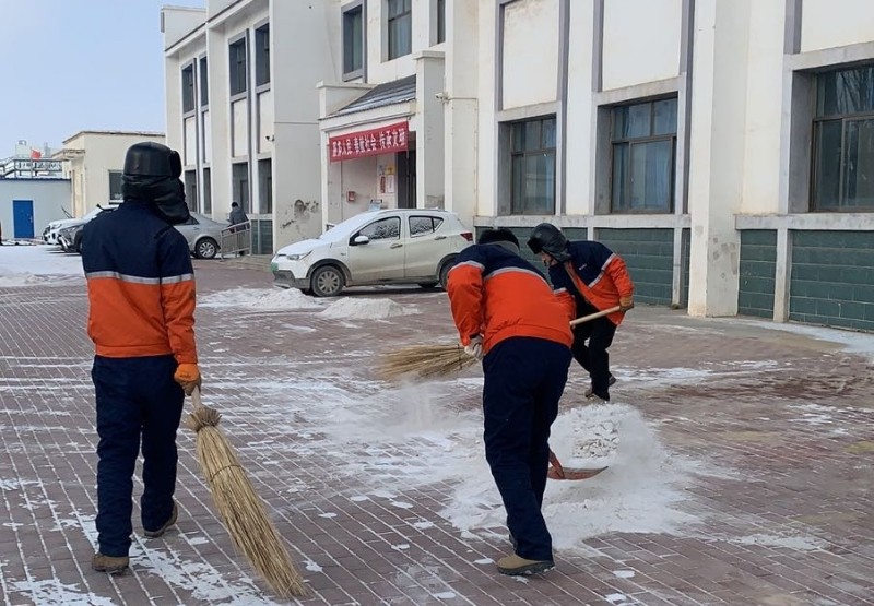 一早,大家分工有序,配合默契,干勁十足,揮舞著掃帚、鐵鍬等除雪工具,你鏟我掃,一派熱火朝天,將雪先掃到一處處集中堆放,再齊心協(xié)力搬運(yùn)至墻角,不給“安全隱患”留機(jī)會(huì)。盡管戴著棉帽子,臉卻凍得通紅,但手中的工具卻也絲毫沒(méi)有松懈,除雪的身影依舊堅(jiān)定穩(wěn)健。天氣雖冷,勞動(dòng)的熱情卻溫暖了整個(gè)冬日,整潔的工服亦構(gòu)成一道道亮麗的風(fēng)景線(xiàn)。