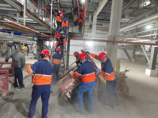 當(dāng)天9時(shí),56名黨員、積極分子及共青團(tuán)員穿戴好勞保用品,準(zhǔn)備好勞動(dòng)工具,在化工熱電公司黨支部支委班子成員帶頭下,大家自領(lǐng)任務(wù),分工明確,協(xié)作有序?;顒?dòng)現(xiàn)場,大家汗流浹背,臉上沾滿了灰土,但是為按時(shí)按量完成保供任務(wù),大家克服天氣炎熱等不利因素,一桶一桶的將底料送入爐膛,用“接力賽”的方式將鍋爐房點(diǎn)亮。
