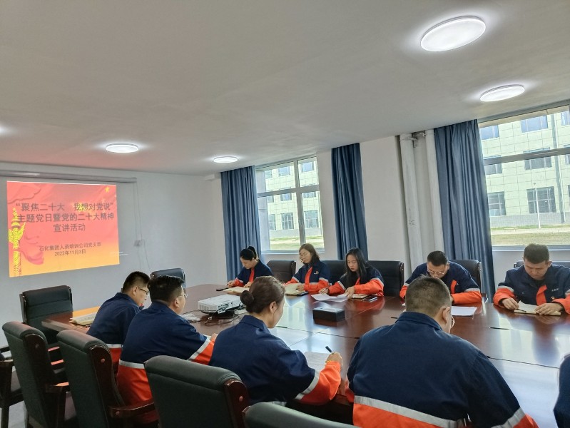 為深入學(xué)習(xí)貫徹黨的二十大精神,促進(jìn)標(biāo)準(zhǔn)化、規(guī)范化、學(xué)習(xí)型黨支部建設(shè),強(qiáng)化支部全體黨員干部作風(fēng),11月3日,人資培訓(xùn)公司黨支部組織開展了“聚焦二十大 我想對(duì)黨說”主題黨日活動(dòng)暨黨的二十大精神宣講。