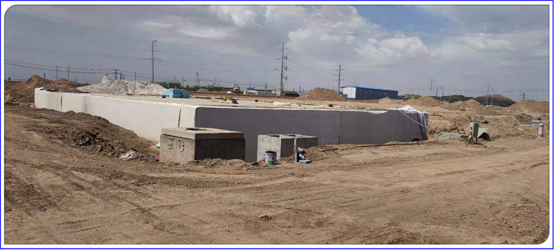 廢水處理站由初期雨水池(有效容積490m3)和事故水池(有效容積1715m3)組成。池壁、底板、頂板通過三層長絲無紡?fù)凉げ迹瑑蓪油罤DPE土工膜做防腐防滲處理。水池注水至雨水池和事故水池連接處,沉降觀測一周,池主體無滲漏后用潛水泵抽水放至現(xiàn)場。水池閉水過程嚴(yán)格按照閉水方案進(jìn)行,并制定了防水現(xiàn)場應(yīng)急處置措施。