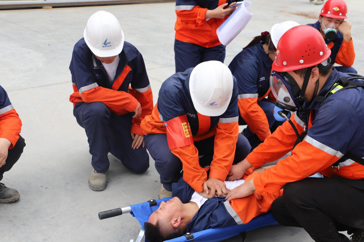 演練從實戰(zhàn)出發(fā),現(xiàn)場總指揮劉鵬宣布啟動專精特新公司泄漏中毒應急預案后,各應急救援立即展開行動:現(xiàn)場保衛(wèi)組立即進行人員疏散和現(xiàn)場警戒、后勤保障組攜帶應急救援物資迅速抵達現(xiàn)場隨時準備補給救援物資、醫(yī)療救護組第一時間將中毒受傷人員經(jīng)過簡單救護后送至救護車、通訊保障組調(diào)試所有通訊設備保證救援過程通訊暢通、事故搶險組戴空氣呼吸器,身穿重型防化服攜帶堵漏工具在現(xiàn)場利用氯氣捕消器,水幕水帶、專業(yè)堵漏工具等進行搶險處置……救援人員各司其職,各環(huán)節(jié)有條不紊、井然有序。經(jīng)過20分鐘的排險、噴淋,氯氣泄漏成功處置,環(huán)境檢測空氣正常,演練結(jié)束。