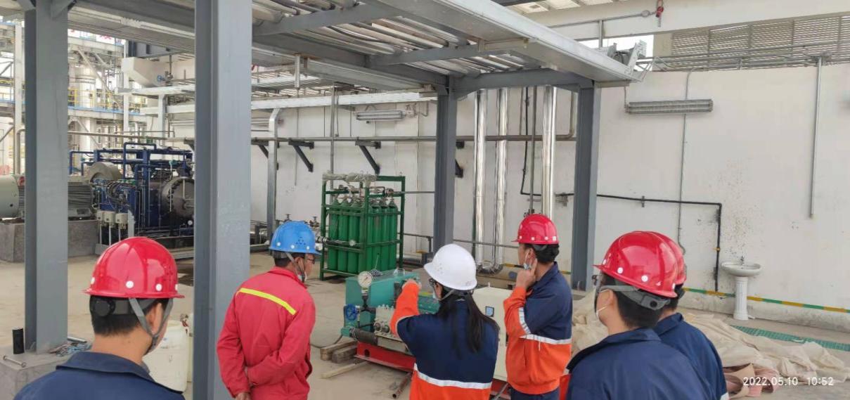 2022年5月10日,液態(tài)太陽合成示范工程電解水制氫裝置氣體純化項(xiàng)目(以下簡稱純化項(xiàng)目)高壓管線試壓工作已順利完成,助推純化項(xiàng)目更快投入使用。