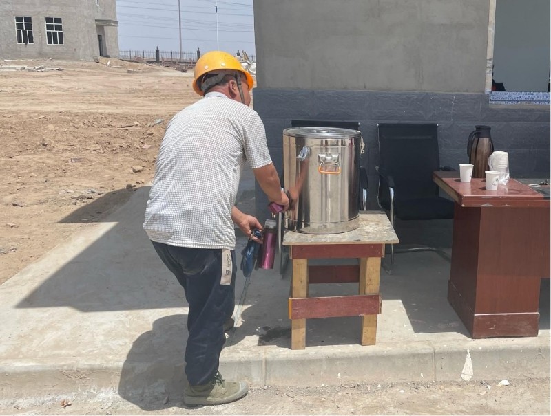 為確保項目順利竣工,化學(xué)工程公司為施工一線工人送去了清涼飲品,綠豆湯、酸梅湯等,并每日安排專人送到施工現(xiàn)場,讓工友們從心底感受到公司送來的清涼關(guān)愛,“涼”在身上,“暖”在心間。項目部管理人員叮囑現(xiàn)場施工人員要注意安全,在夏日工作中一定要注意防暑,牢記高溫季節(jié)施工安全注意事項,合理安排作息時間,注意勞逸結(jié)合。