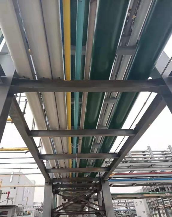 目前保溫用各類彩鋼板共計使用約35000㎡,各類管線保溫絕熱材料共計使用約30000m,各類設備保溫材料約400m3。為確保投產順利平穩(wěn)運行,項目人員對剩余未保溫設備、管線加速保溫,逐一銷項,在此期間,為規(guī)范業(yè)主公司安全警示標志管理,色標統(tǒng)一規(guī)范,結合現(xiàn)場實際情況,為各類管線穿上不同的“衣服”。