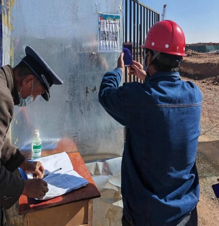 施工現(xiàn)場實(shí)行兩碼一登記一測溫疫情防控措施,為安全文明施工保駕護(hù)航,確保疫情防控工作與項(xiàng)目建設(shè)同步進(jìn)行,從而達(dá)到項(xiàng)目如期完工的目標(biāo)。