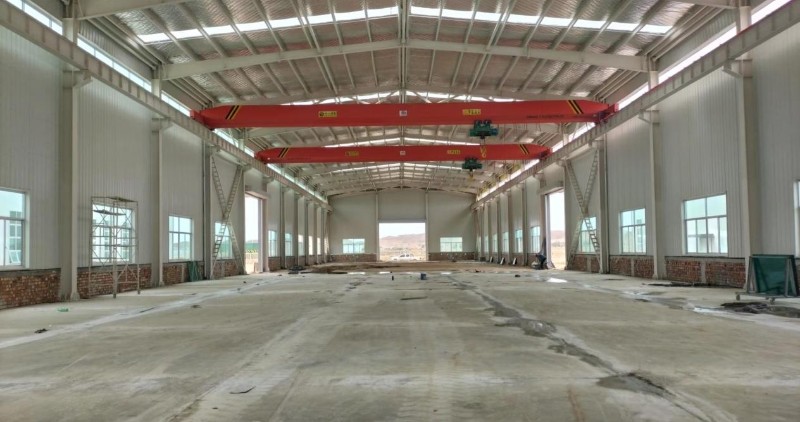 根據(jù)公司戰(zhàn)略推進(jìn)及業(yè)務(wù)發(fā)展需要,化學(xué)工程公司在集團(tuán)公司的大力支持下設(shè)立鋼結(jié)構(gòu)加工生產(chǎn)線。鋼結(jié)構(gòu)加工廠房位于蘭州新區(qū)化工園區(qū)檢測檢驗(yàn)及公共服務(wù)平臺項(xiàng)目建設(shè)基地,廠房總面積3600㎡,其中,加工車間2400㎡,噴漆車間600㎡,噴砂車間600㎡,車間內(nèi)部配置6臺10噸行車,一套鋼結(jié)構(gòu)加工流水線設(shè)備,計劃年產(chǎn)量6500噸。截至目前,該廠房主體結(jié)構(gòu)已完成,部分行車安裝到位,剩余行車及設(shè)備將陸續(xù)進(jìn)場。
