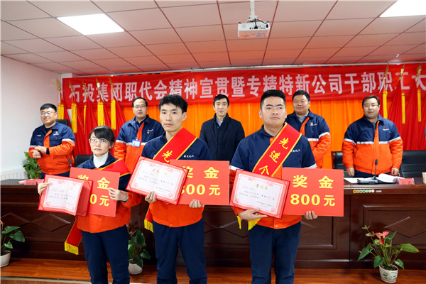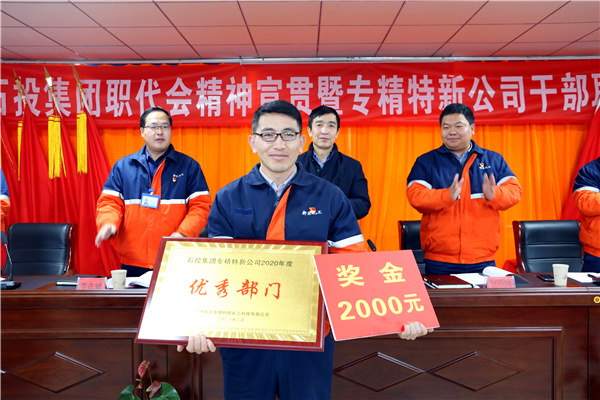 會(huì)上,對(duì)集團(tuán)公司第一屆一次職工代表大會(huì)暨2021年工作會(huì)議精神進(jìn)行了宣貫,并特別邀請(qǐng)集團(tuán)公司2020年勞動(dòng)模范雪生謀、劉宗強(qiáng)、楊少偉三名同志進(jìn)行了勞模精神宣講。 專精特新公司總經(jīng)理葉得強(qiáng)同志作了題為《奮楫破浪行 揚(yáng)帆啟新程 為助力集團(tuán)轉(zhuǎn)型發(fā)展不懈奮斗》的工作報(bào)告?;仡櫫藢>匦鹿?020年度經(jīng)營目標(biāo)和重點(diǎn)工作完成情況,同時(shí)從堅(jiān)持以高質(zhì)量黨建推進(jìn)高質(zhì)量發(fā)展、深化機(jī)構(gòu)改革、激發(fā)隊(duì)伍活力、健全安全管理體系、提升生產(chǎn)運(yùn)行質(zhì)量、加快推進(jìn)項(xiàng)目建設(shè)、實(shí)現(xiàn)招商新突破、探索產(chǎn)業(yè)結(jié)構(gòu)調(diào)整等八個(gè)方面安排部署了2021年工作任務(wù)。 會(huì)上,專精特新公司負(fù)責(zé)人與各部門及子公司負(fù)責(zé)人簽訂了2021年度安全及經(jīng)營目標(biāo)責(zé)任書。表彰獎(jiǎng)勵(lì)了2020年為公司項(xiàng)目建設(shè)、生產(chǎn)運(yùn)營,做出積極貢獻(xiàn)的優(yōu)秀部門和先進(jìn)個(gè)人。 姜錦在講話中充分肯定了專精特新公司2020年在項(xiàng)目建設(shè)、招商引資、企業(yè)管理等工作方面取得的成果,并針對(duì)人才隊(duì)伍建設(shè)、項(xiàng)目規(guī)劃創(chuàng)新、成本核算、安全環(huán)保及企業(yè)文化等方面提出了下一步的工作要求。他強(qiáng)調(diào),一是要不斷加強(qiáng)支部標(biāo)準(zhǔn)化建設(shè),夯實(shí)基層黨建基礎(chǔ),建立健全各項(xiàng)規(guī)章制度,加強(qiáng)黨建與業(yè)務(wù)工作融合,探索黨建共創(chuàng)新局面。二是要抓好安全穩(wěn)定生產(chǎn),夯實(shí)安全環(huán)?;A(chǔ),建立規(guī)范的園區(qū)運(yùn)營管理體系,推行一體化生產(chǎn)管理模式,為入駐企業(yè)做好細(xì)致周到服務(wù)工作,確保園區(qū)企業(yè)早投產(chǎn)和安全穩(wěn)定運(yùn)行。三是要做好C區(qū)項(xiàng)目建設(shè),創(chuàng)新思路和理念,借鑒A、B區(qū)的經(jīng)驗(yàn),采用多渠道多形式進(jìn)行項(xiàng)目建設(shè),大幅度壓縮建設(shè)周期、降低建設(shè)成本,提升實(shí)用功能、提高投資效能。 2021年,是“十四五”規(guī)劃的開局之年,是中國共產(chǎn)黨成立100周年,也是集團(tuán)公司改革創(chuàng)新、實(shí)現(xiàn)高質(zhì)量發(fā)展的關(guān)鍵之年,專精特新公司將以此為契機(jī),以更加鏗鏘的步伐,更加飽滿的工作激情,團(tuán)結(jié)一心,奮勇前行,為集團(tuán)公司高質(zhì)量發(fā)展和實(shí)現(xiàn)千億級(jí)綠色化工園區(qū)而不懈奮斗!