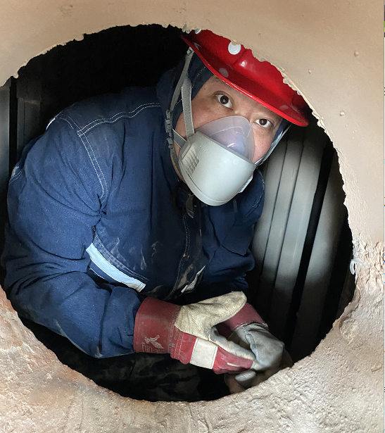 “我愿意去清焦!”此時,人群中傳出了鏗鏘有力的聲音——劉宗強主動請命執(zhí)行這一艱巨又危險的任務(wù)。在他的帶領(lǐng)下,一個又一個同事站了出來,請求和劉宗強一起進鍋爐清焦。由于爐膛空間有限,第一批進爐膛的只有劉宗強等3人,他們呼吸著渾濁的空氣,聽著手中撬杠發(fā)出的聲音,時間如同被調(diào)慢了。來不及喝水、來不及吃東西,劉宗強和同事們頂著疲憊的身體一干就是好幾個小時。清理完畢后,每個人“灰頭土臉”地從爐膛里出來,有眼尖的同事發(fā)現(xiàn),劉宗強的勞保鞋底竟然被高溫熔化了大半。