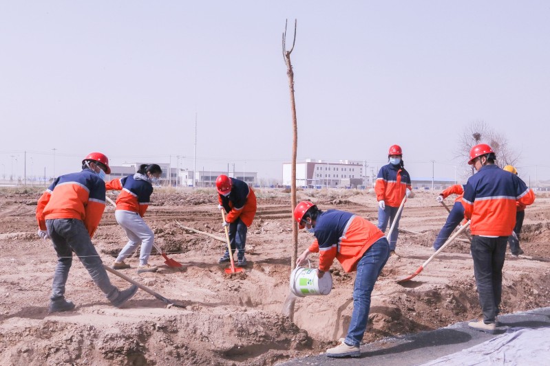 活動中,大家熱情高漲,分組協(xié)作,揮動鐵鍬,扶正樹苗,填土踩實(shí),提桶澆水一氣呵成,忙而有序,植樹現(xiàn)場呈現(xiàn)出一副熱火朝天的勞動景象。為保證樹苗的成活率,專業(yè)人員現(xiàn)場對苗木栽植、澆水、養(yǎng)護(hù)等工作進(jìn)行全程指導(dǎo)和監(jiān)督,確保植樹造林質(zhì)量。經(jīng)過大家的辛勤勞動和努力,一株株樹苗迎風(fēng)矗立,給化工園區(qū)增添了一道亮麗的風(fēng)景線。